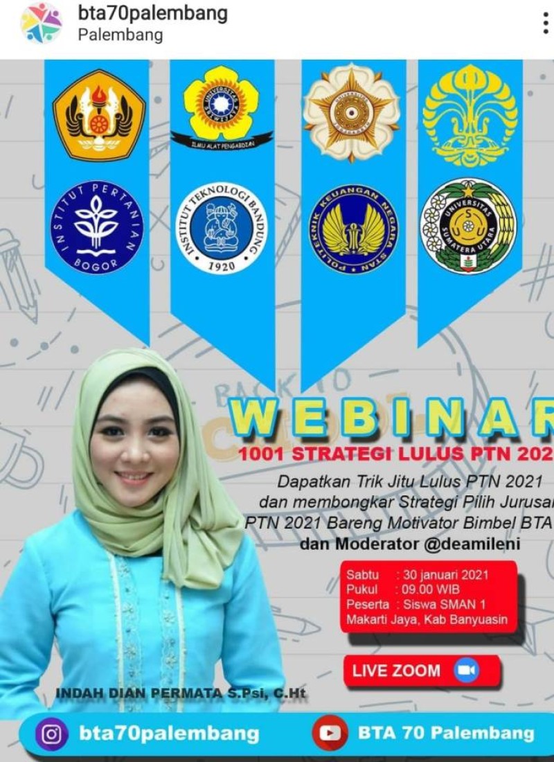 SMAN 1 Makarti Jaya bekerja sama dengan bimbel BTA'70 Jakarta cabang Palembang mengadakan Try Out (TO) 2 yang diikuti oleh seluruh siswa kelas XII SMAN 1 Makarti Jaya. TO merupakan lanjutan dari TO 1 yang telah dilaksanakan pada tanggal 9 Januari 2021 dalam rangka mempersiapkan siswa-siswi kelas XII mengikuti UTBK 2021