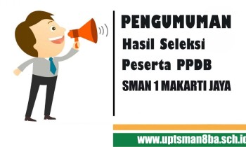 Selengkapnya<div>Pengumuman PPDB akan diumumkan secara online melalui website resmi SMAN 1 Makarti Jaya tanggal 24 Mei 2022 mulai pukul 00.00 WIB, dengan cara:<br></div><div>1. klik link berikut www.uptsman8ba.sch.id</div><div>2. klik banner PPDB</div><div>3. klik menu login, login menggunakan username (NISN) dan